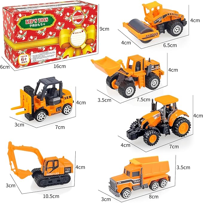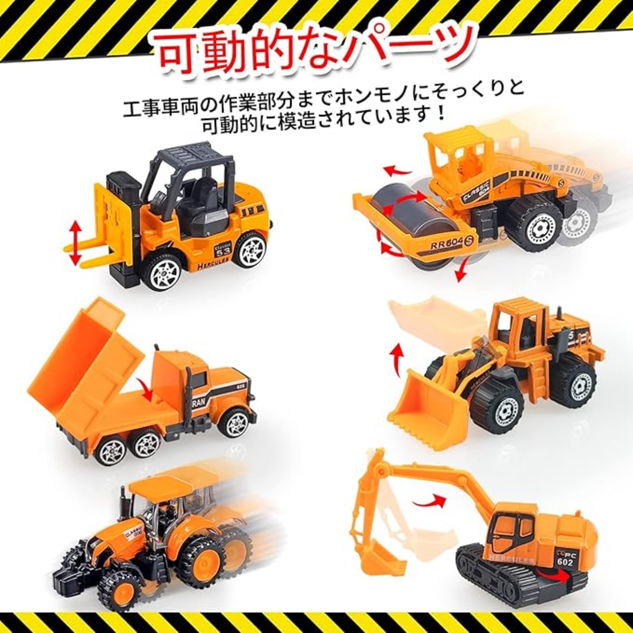 【車 おもちゃ&建設車両 】フォークリフト、ロードローラー、ブルドーザー、ショベルカー、トラクター、牽引車など男の子が大好きな6点セットはたらくくるまです。豊富なミニカーセットで建設現場を再現し、楽しく遊べます!