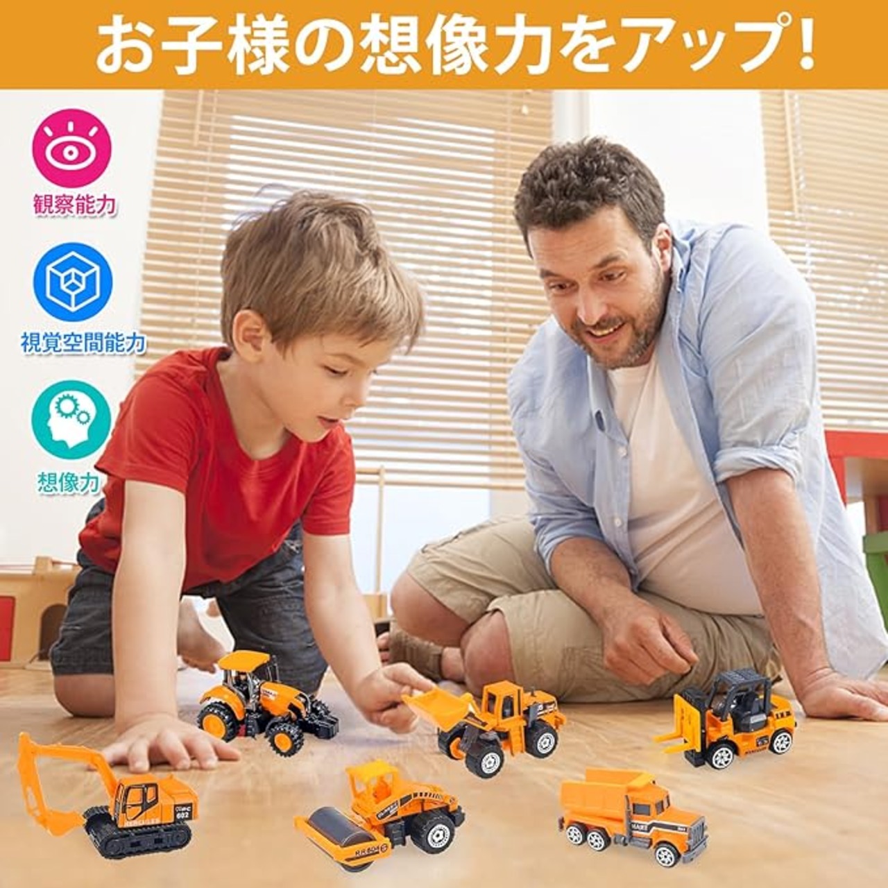 【遊びから学び】工事車両 おもちゃ は友達もしくは家族一緒遊べます。遊びの中で、手先の器用さ、集中力、自信など発達させ、遊びうちに想像力をたくさん膨らませ、指先を使って遊ぶことで脳にいい刺激を与えるです。