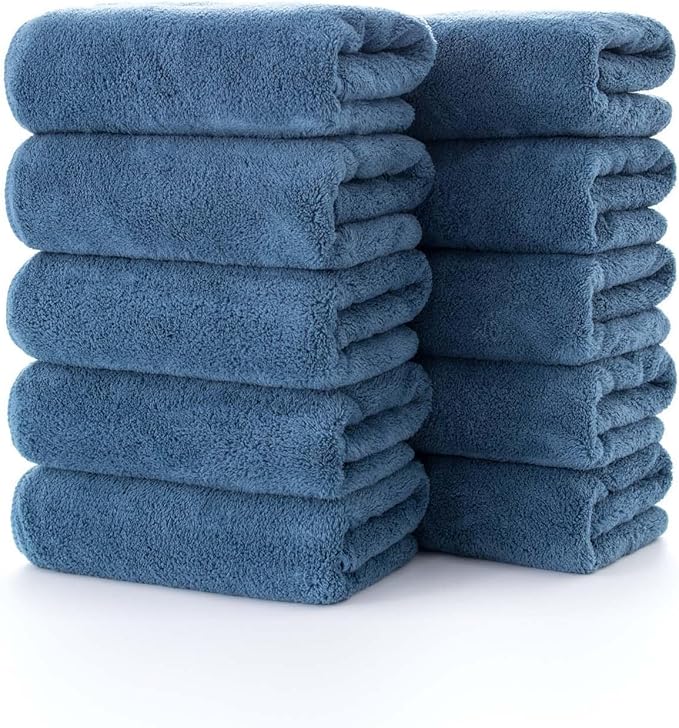 Lumimi フェイスタオル 【10枚セット スモーキーブルー 35*75cm】速乾 ホテル仕様/業務用/家庭/スポーツなどに最適 マイクロファイバー 瞬間吸水 柔らかい 素肌にやさしい 四季通用