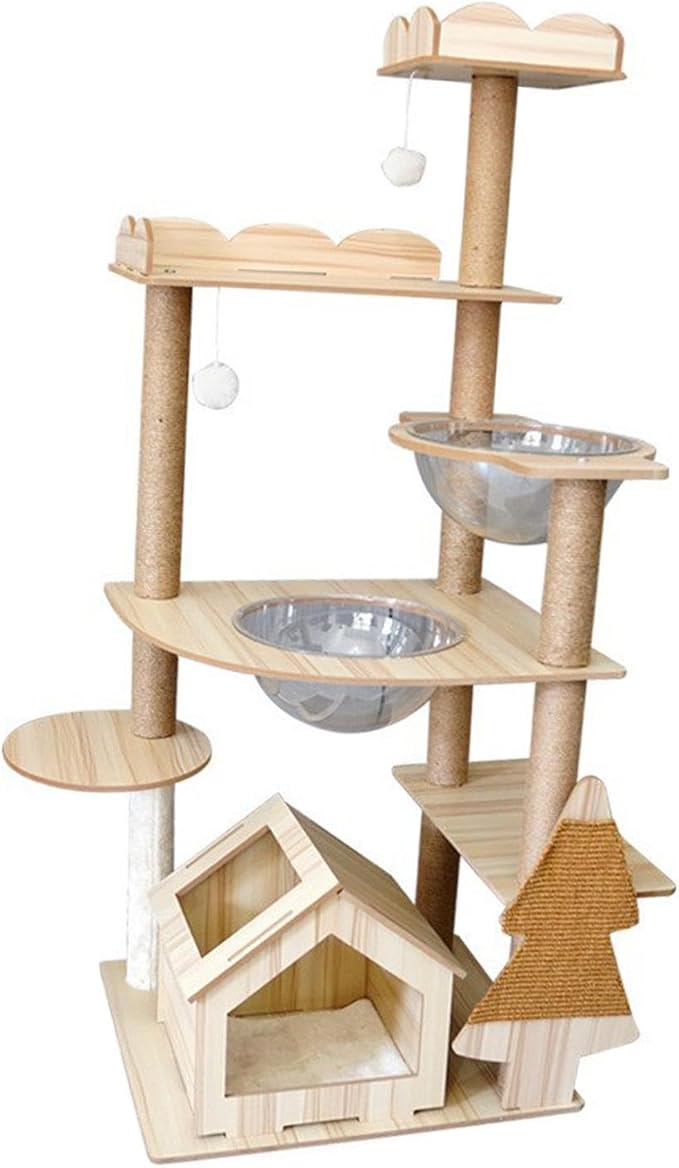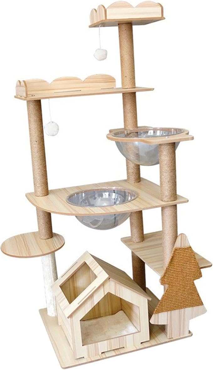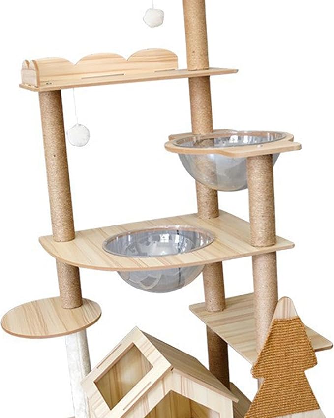 【複数のレベル】: 多層設計のキャットツリーには、猫ベッド、ボール、ダイビングプラットフォーム、スペースカプセルが含まれており、猫がジャンプするのに適しています。