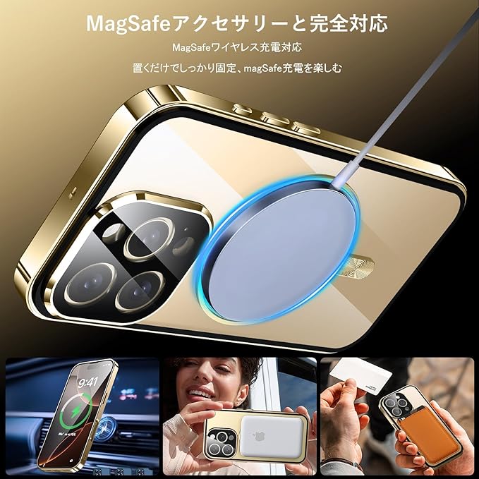 互換性モデル:iPhone 16 Pro Max 用 両面 Magsafe対応 ケース 6.9インチ。※ご注意:本製品の正面に強化ガラスを使用しているのため、他の液晶保護フィルムは必要ありません。
