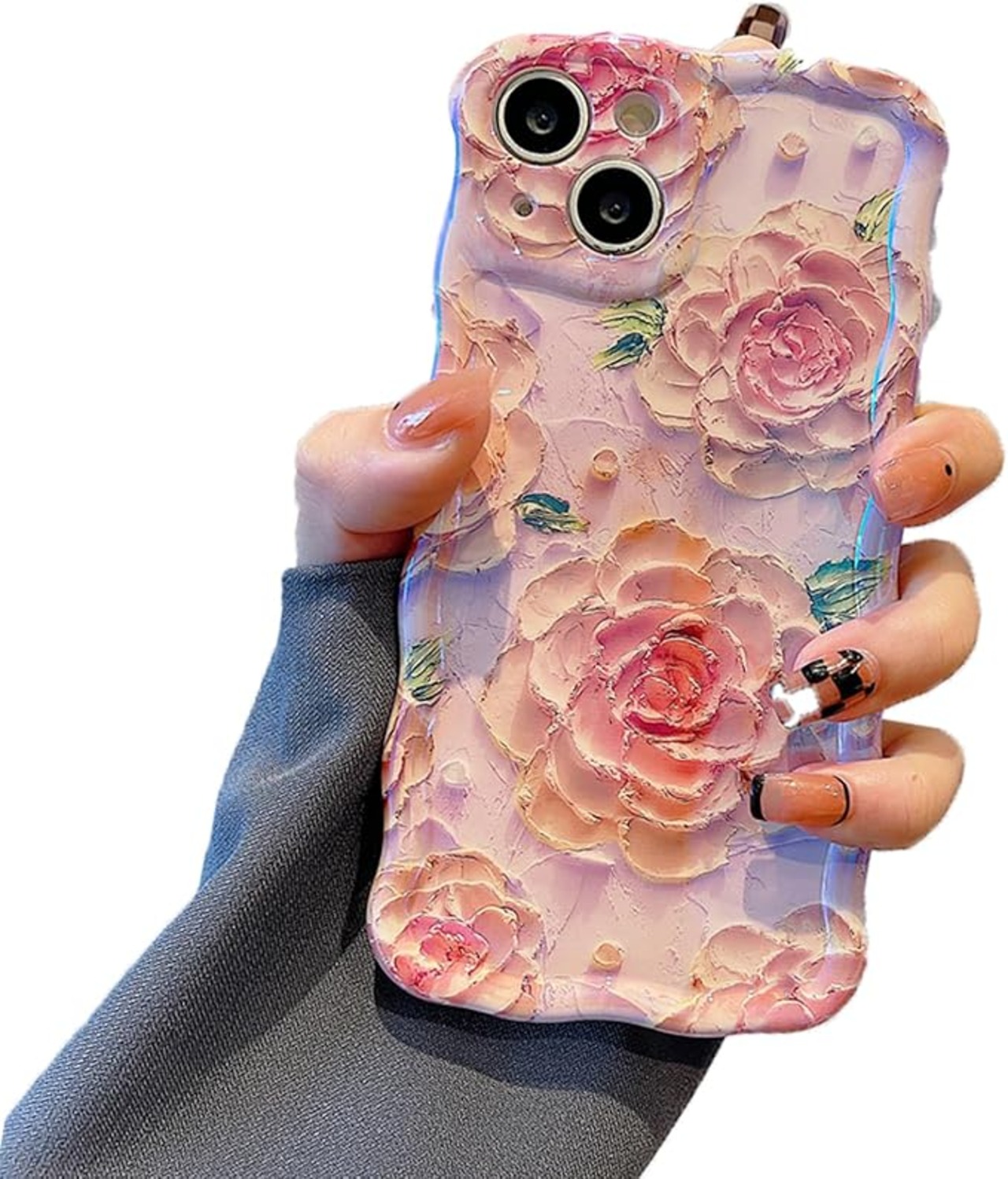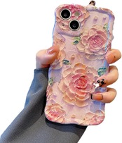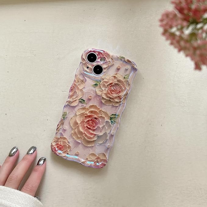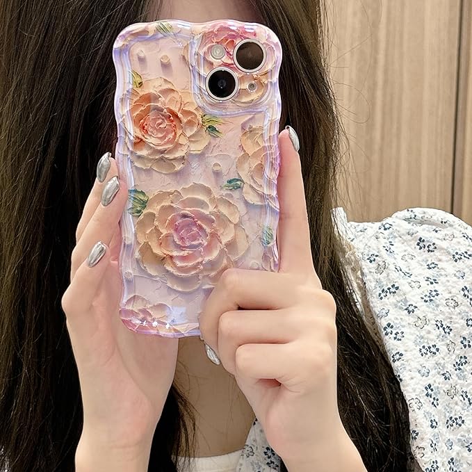 【花柄デザイン ▪ フィット感】背面にカラフルな油絵の花柄、色味が優しく、いつものスマホに上品さをプラス。側面が透明なデザインからiPhone 16カラーが見えるデザインで、本来の美しさと高級感をそのままに映り出し。