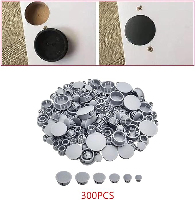 Generic 300個 穴 パイプインサート ポータブル 実用ファスナー ネジカバー パネル ドア キッチン用 ロック穴チューブ, グレー