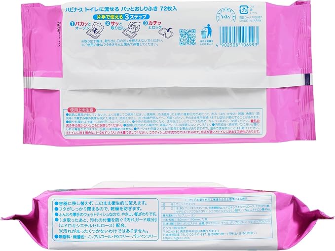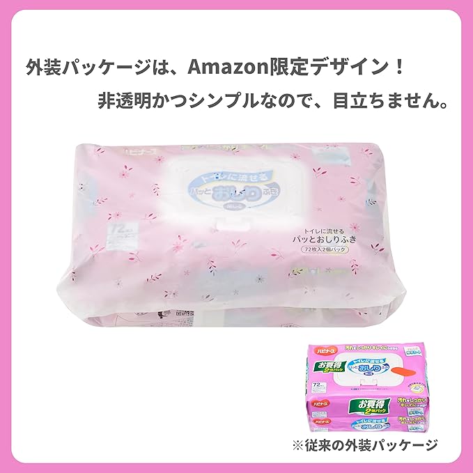 【Amazon.co.jp限定】トイレに流せるパッとおしりふき72枚2個パック ケース販売用 ハビナース 無香料 180 190㎜ 汚れガード成分配合 日本製