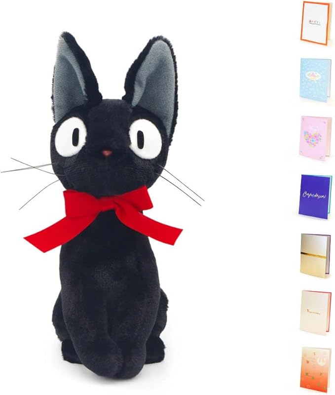 電報屋のエクスメール ぬいぐるみ 電報 「ジブリ なかよしお手玉 ジジ」と「紙素材カード電報」セット お祝い ギフト 祝電 魔女の宅急便 スタジオジブリ 台紙:104「シルキーライン」