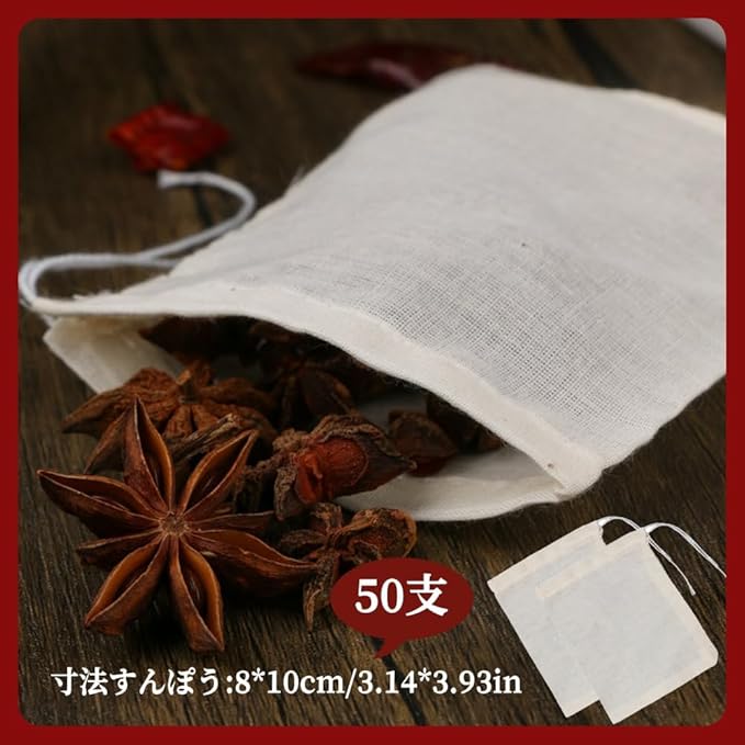 50枚入 コットン巾着袋 フィルターバッグ コットン モスリン 再利用可能 ギフトバッグ ラッピング袋 アクセサリーポーチ 小物入れ 雑貨 ギフト用 引きひも袋 8 10cm