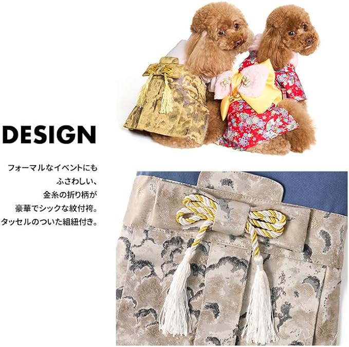 【LIFELIKE公式】新春袴 犬 服 袴 着物 七五三 お正月 結婚式 イベント 小型犬 子犬 パピー チワワ トイプー 犬服 ドッグウェア 犬の服 ペット服 洋服 ペット用品 抜け毛防止 お散歩 おでかけ ライフライク (ゴールド, 1号)