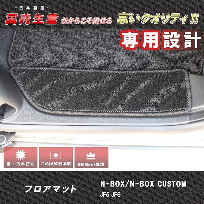 ZeroCircle 新型N-BOX JF5/JF6 ステップマット (装着画像あり) 4枚組 純正互換品 エントランスマット 日本製 NBOXカスタム (ウェーブブラック)