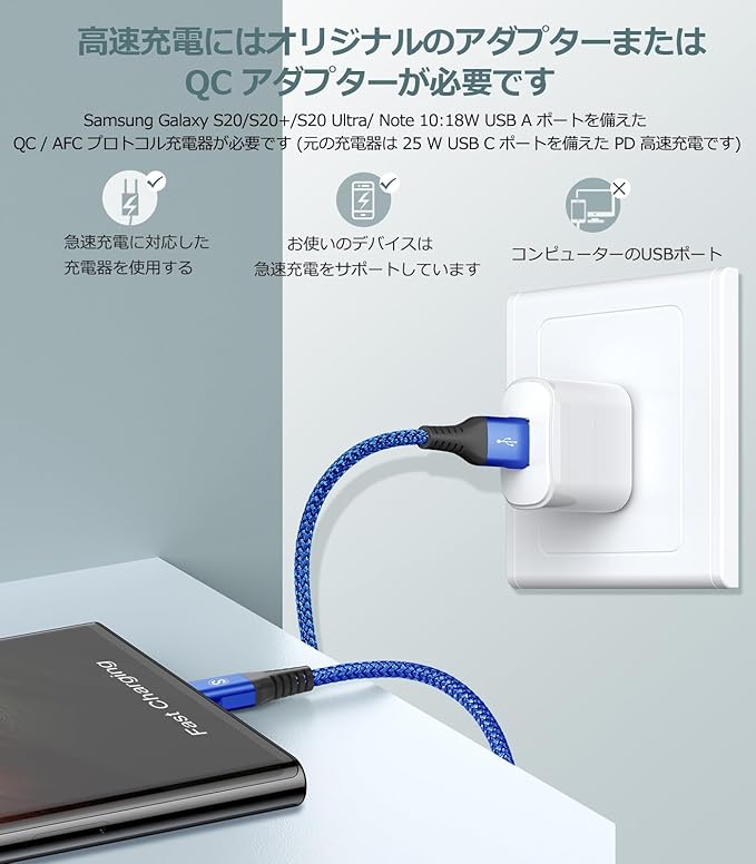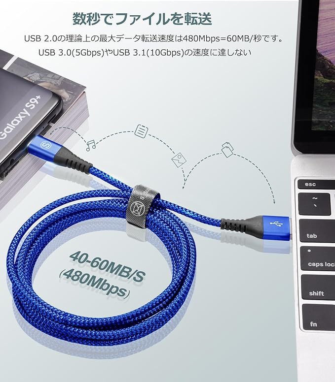 【高速充電・データ転送】(Quick Charge 3.0)の急速充電と最大480Mbpsの高速同期を実現出来ます。cタイプ ケーブル銅製心線を採用し、電気抵抗が低く、 充電速度がより速くなり。▲急速充電達成する:接続されたデバイスと充電器はQC3.0高速充電をサポートします。