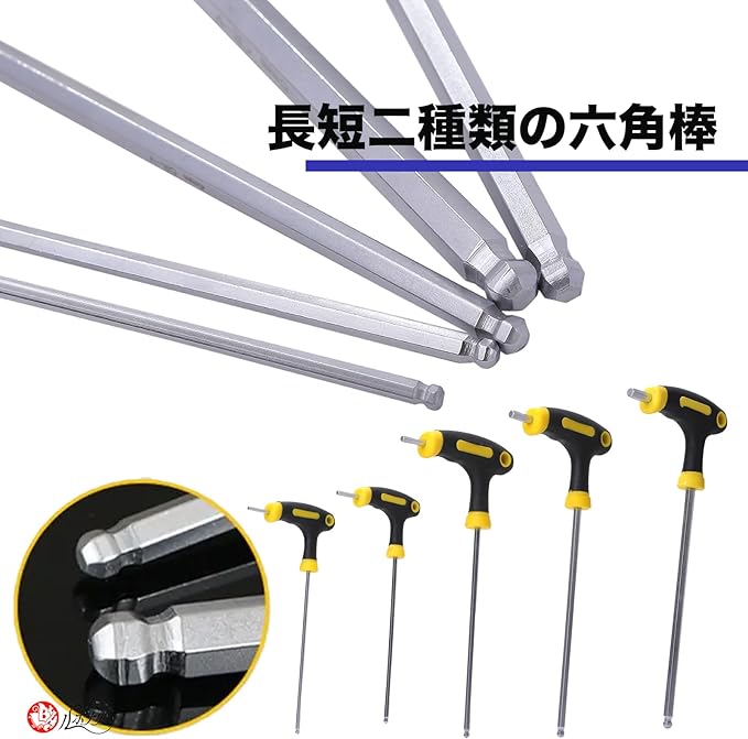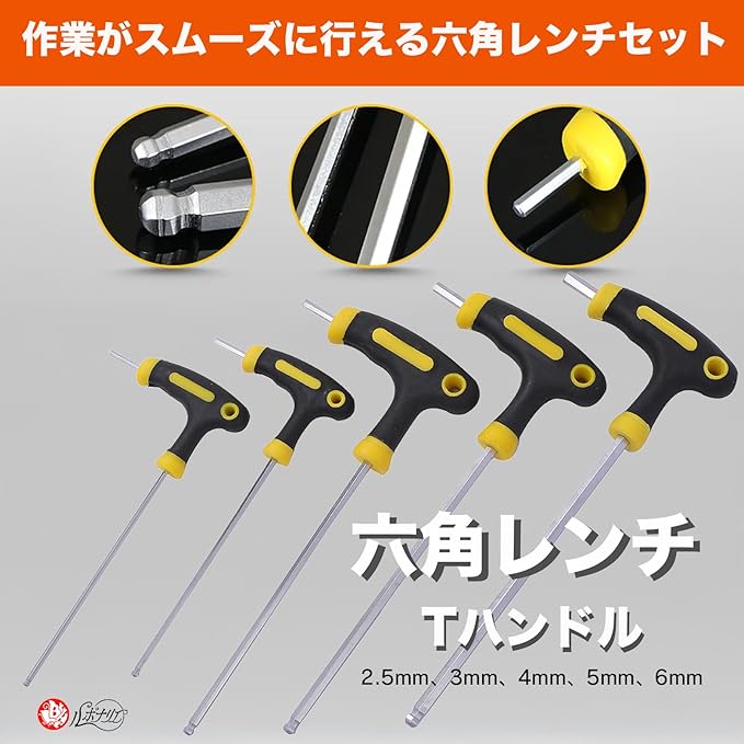 ルボナリエ 六角レンチ Tハンドル ロングボールポイント 六角レンチセット T型 2.5mm 3mm 4mm 5mm 6mm (イエロー 5本)