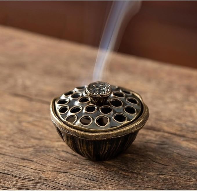 香炉 お香立て 真鍮の蓋付き おしゃれ シンプル 難燃綿と香立てつき アロマ 瞑想 仏壇用 浄化 香道 仏具 纯铜香炉 三足铜炉 镂空莲花炉 迷你莲子香薰炉 多孔宝莲灯香炉 (ミニ蓮の実香炉) [並行輸入品]