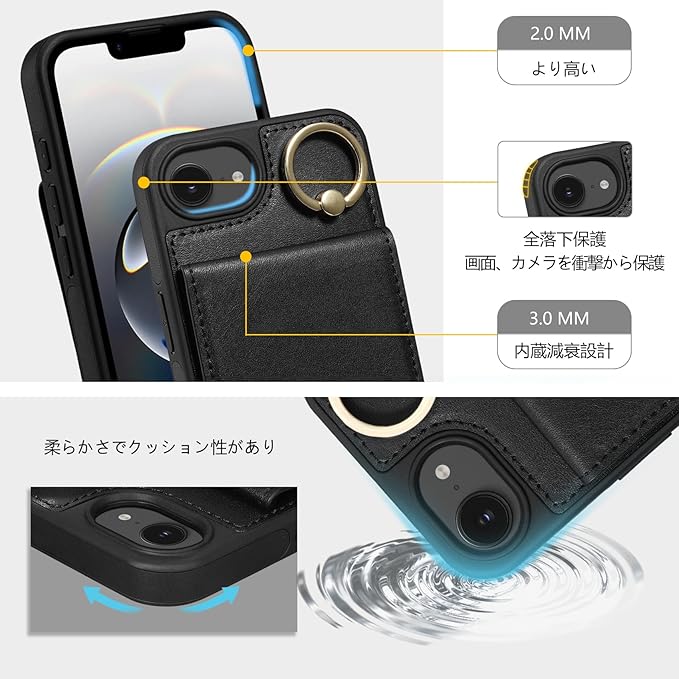 【高品質素材】厳選された上質なPUレザーと柔らかいTPU素材を使用します。手触りが良く、耐摩耗性や放熱性にも優れ、傷や埃からスマホをしっかり保護出来、長時間使用にも最適な iPhone 16e ケースです。
