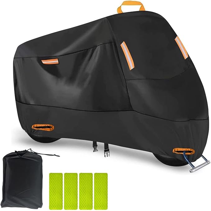 iKristin バイクカバー 厚手 320D 車体カバー オートバイカバー 防水 耐熱 警告反射テープ5枚付き 盗難防止ロック穴 ワンタッチバックル前後付き 防風 防埃 防雨 防雪 バイク用レインカバー 収納バッグ付き (XXXL)