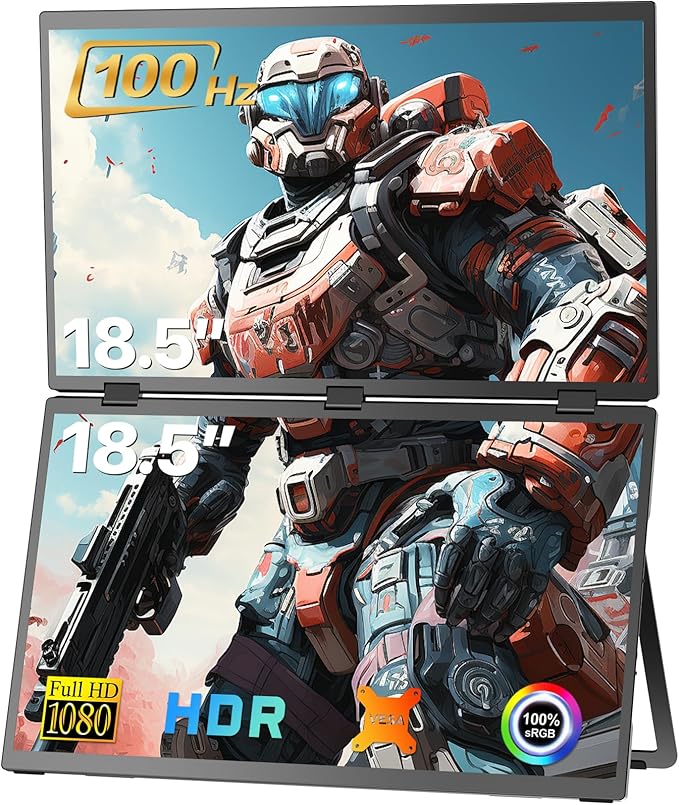 Newsoul デュアル モバイルモニター 18.5インチ デュアルモニタ 2画面モニター 自立型 デュアルディスプレイ 100HZ 折り畳み FHD1080P トリプルモニタ 180 自動回転 IPS液晶パネル フル機能Type-C MiniHDMI VESA対応 PC/Mac対応