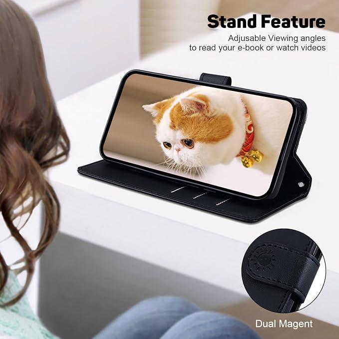 スマホケース 対応機種 for Realme C12 4G / C25 4G / C25s 4G,対応機種 for Realme 7i (Global) 4G ランヤードカードスロットマグネットクラスプスタンド [PUレザー+スマホケース] Black