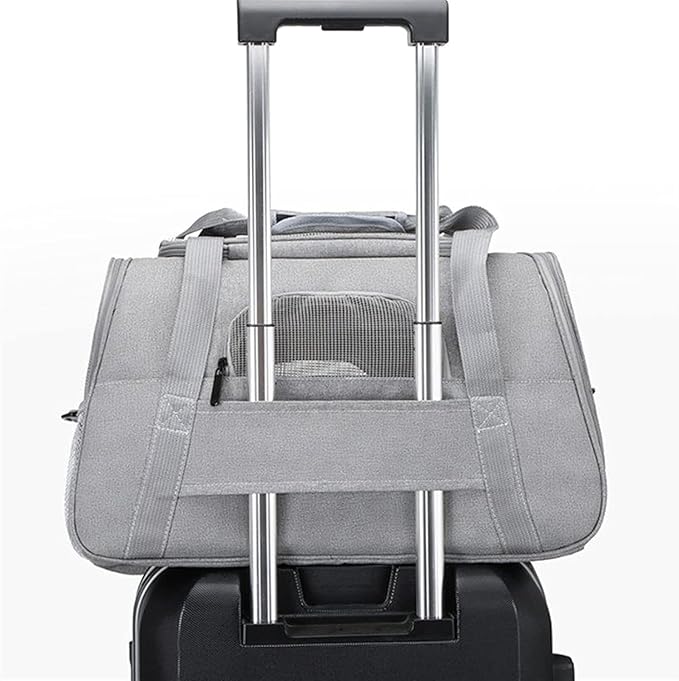 両側のジッパー開口部はペットの出入りに便利で、簡単に折りたたむことができます。 バッグはトロリーケースに固定されています。
