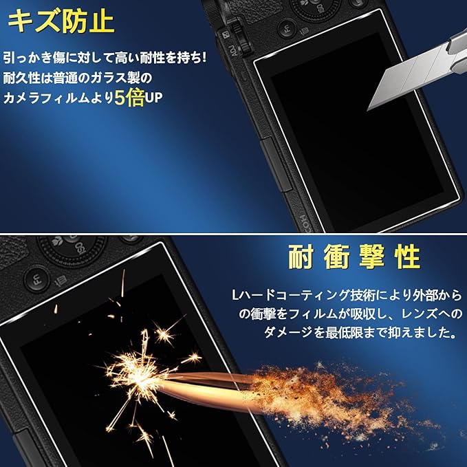 【日本製素材旭硝子製・耐衝撃性、飛散防止でさらに安心!】 対応 RICOH GR III/GR IIIX 保護フィルム 日本製旭硝子素材、9H硬度。バッグの中の鍵やコインなど、様々なものからカメラのスクリーンを保護します。 またハードコーティング技術により、強度を普通より3倍以上アップしており、により外部からの衝撃をフィルムが吸収し、画面へのダメージを最低限まで抑えました。防爆、耐スクラッチ性、落下防止。特殊な飛散防止設計により、万一割れてしまった際にも飛散することなく、高い安全性を実現します。長く安心して使えます。