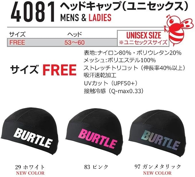 [エアークラフト] バートル BURTLE 4081 ヘッドキャップ オリジナルカラビナ付き 作業服 ユニセックス メッシュ ストレッチ 吸汗速乾 ヘルメット インナー