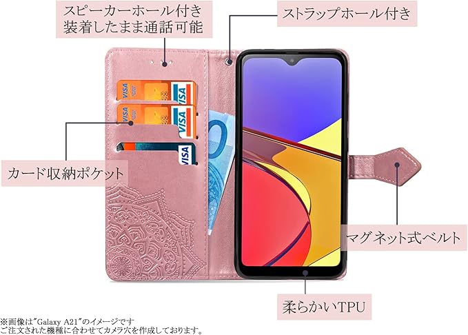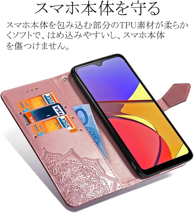 【素材】高品質なPUレザーを採用した手帳型 ケース、キズや汚れに強く、放熱性や耐衝撃が良い。端末固定部分は柔軟のあるTPU素材を使用。手触りが良く、脱着も簡単です。