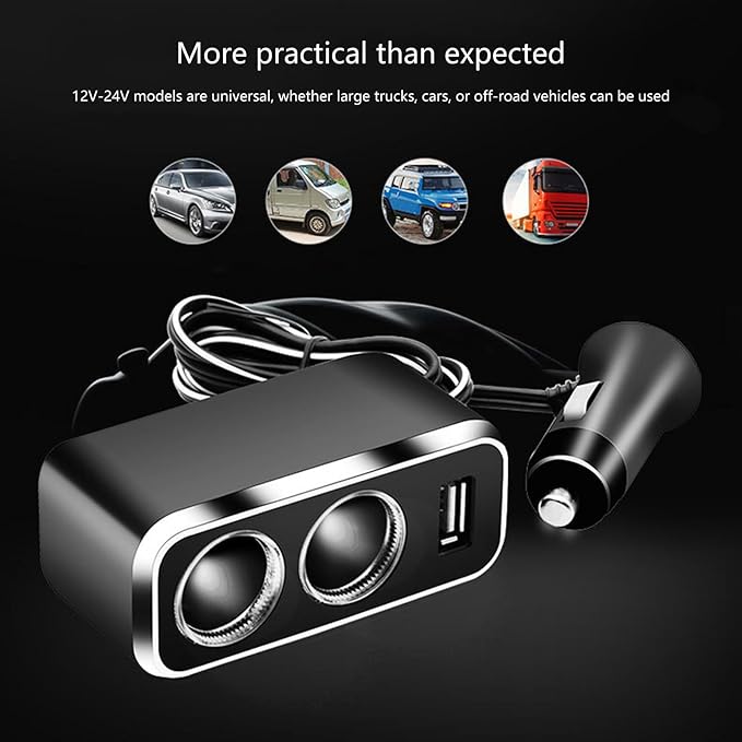ポータブルシングルUSBカー充電アダプター車両充電スプリッターアダプター複数のデバイス用の青色LEDライト付き