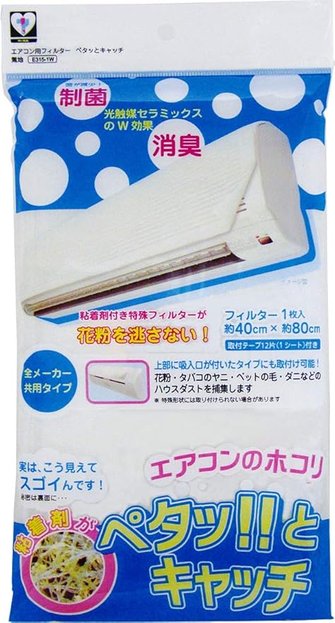 新北九州工業 エアコン フィルター 抗菌 消臭 ハウスダスト 花粉 PM2.5 貼るだけ ペタッとキャッチ 日本製 無地 40 80cm E315-1W