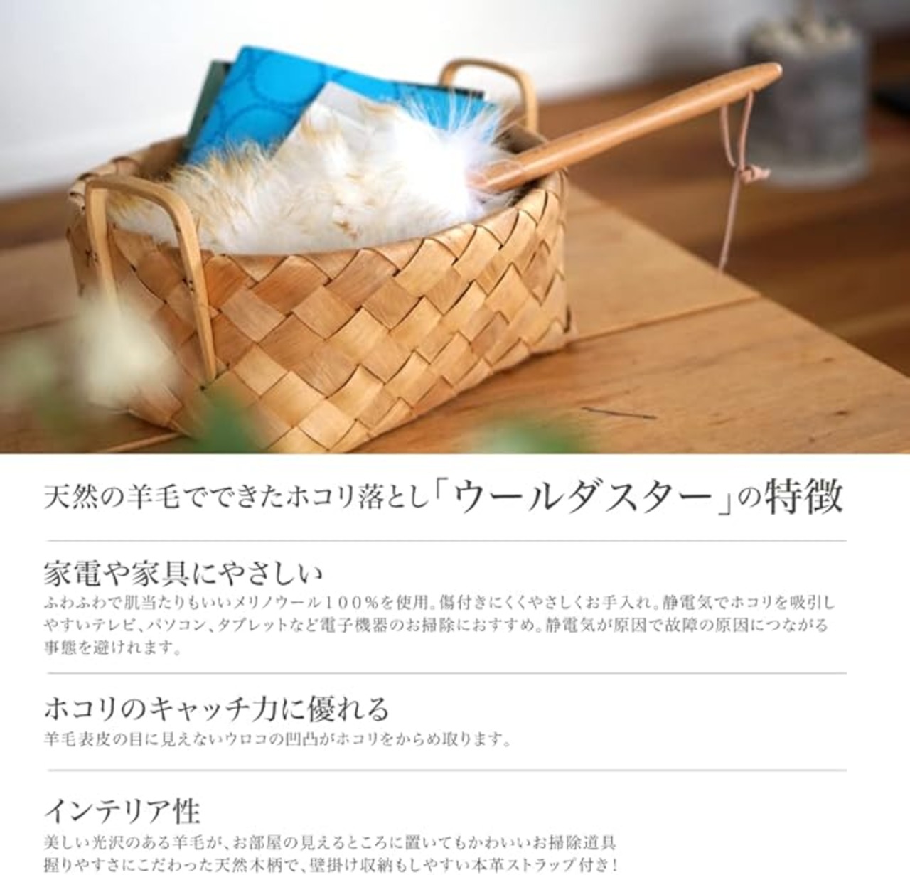 藤栄(FUJIEI) ウールダスター L WD-002 はたき ほこり取り 掃除 羊毛 インテリア 天然素材 ふわふわ おしゃれ 洗える ダスター 再利用可能 軽量 ハンディモップ 掃除道具 家庭用 車用 フック付き かわいい