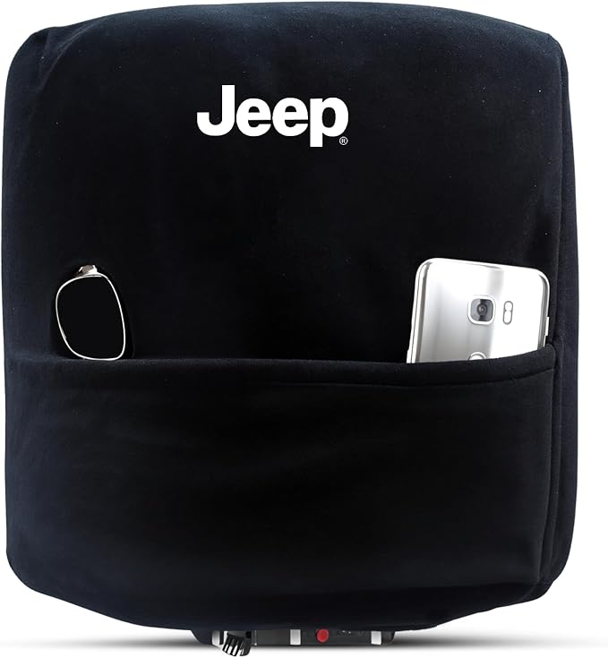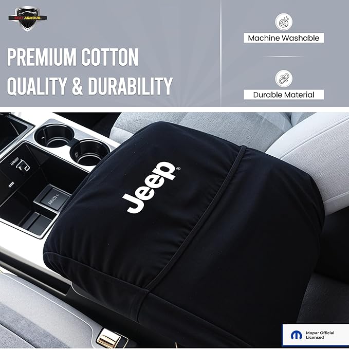 Seat Armour公式ライセンス カスタムフィット センターコンソールカバー ジープ刺繍ロゴ入り ジープラングラーモデル用 - (ブラック)、2001 - 2006
