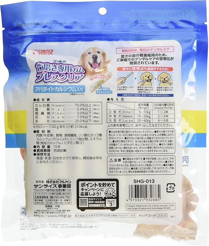 ゴン太の歯磨き専用ガム ブレスクリア アパタイトカルシウム入り L 15本