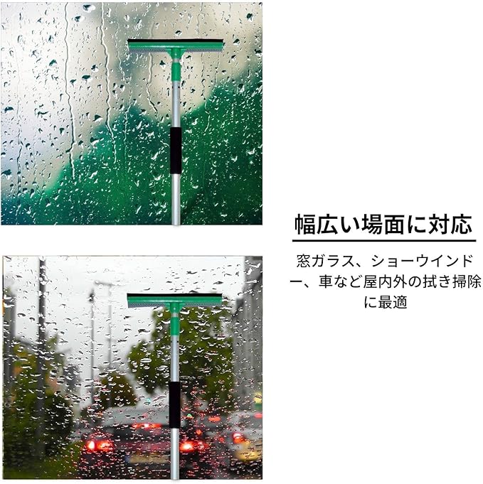【特徴】簡易的な窓用のワイパーです。アルミの2段伸縮柄で最長120cmまで伸びます。スポンジ面に洗剤を含ませ汚れを擦り ゴム面で水切りできます 。窓ガラス ショーウインドー 車の窓等の掃除に適しています。