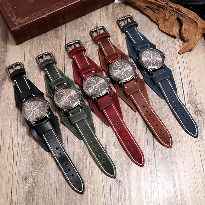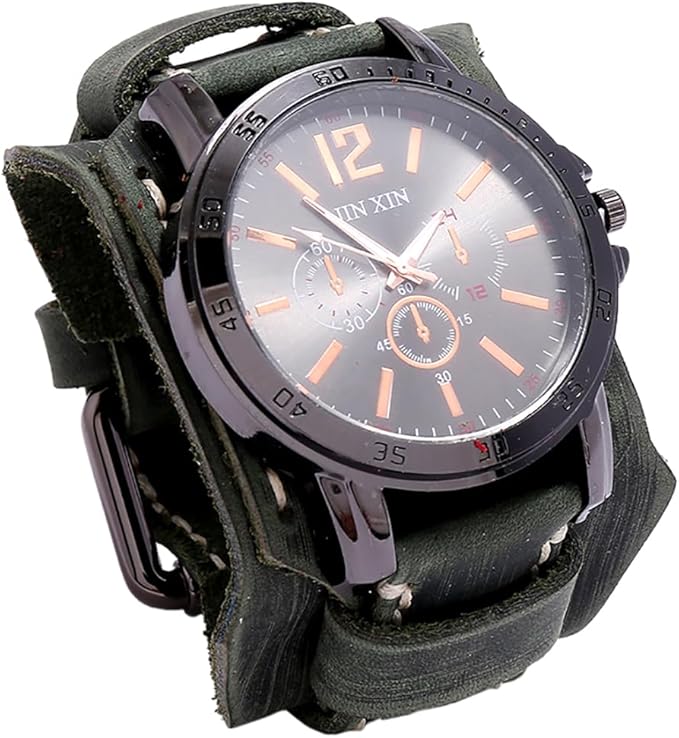 ZooooM 太め ワイド アンティーク デザイン ウォッチ 腕 時計 クォーツ ファッション カジュアル ギフト プレゼント 男性 女性 メンズ レディース (グリーン) ZM-WATCH2-106-GR