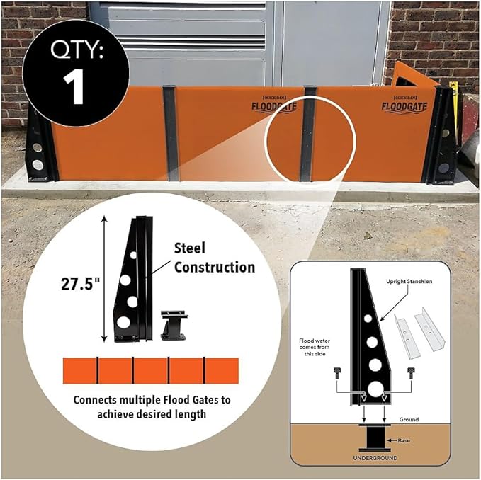 Quick Dam フラッドゲート スタンチオンセットは、複数フラッドゲートに結合し、長さ制限なし