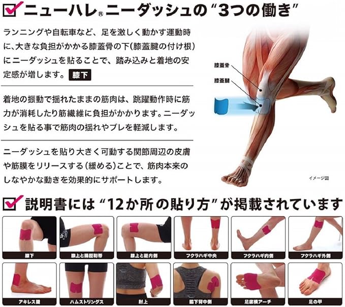 New-HALE(ニューハレ) テーピング テープ プレカットタイプ すぐ貼れるシリーズ ニ―ダッシュ 6枚入り