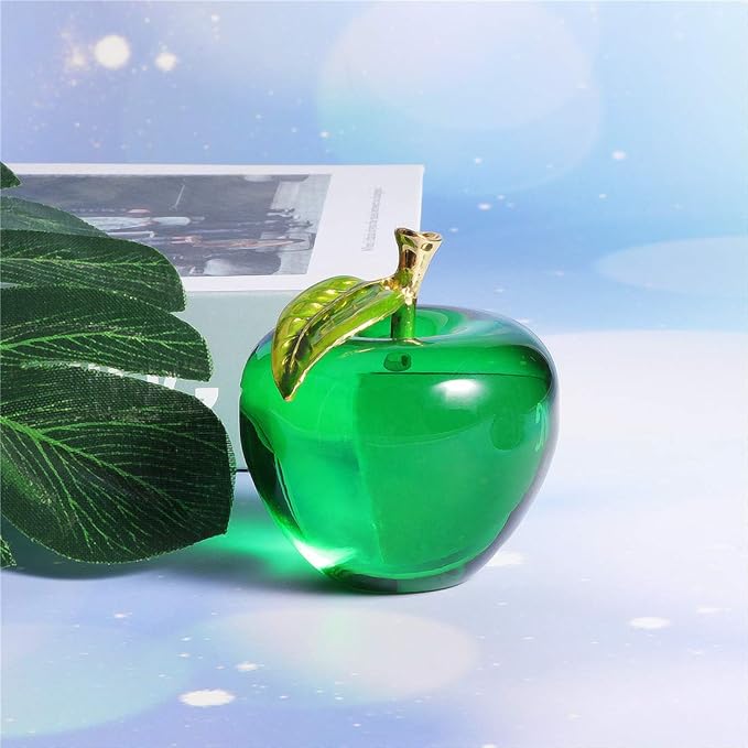 Waltz&F 釉製直径55mm水晶リンゴ クリスタルアップル ペーパーウェイト ギフト インテリア 開運グッズ 装飾置物 (緑)