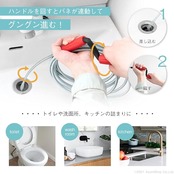 ◆手元のレバーによる回転運動で詰まりの原因を粉砕! 手元のレバーによる回転運動でどんどん進み、つまりの原因を粉砕します! 排水管に詰まった髪の毛などの異物を根こそぎからめ取る!!