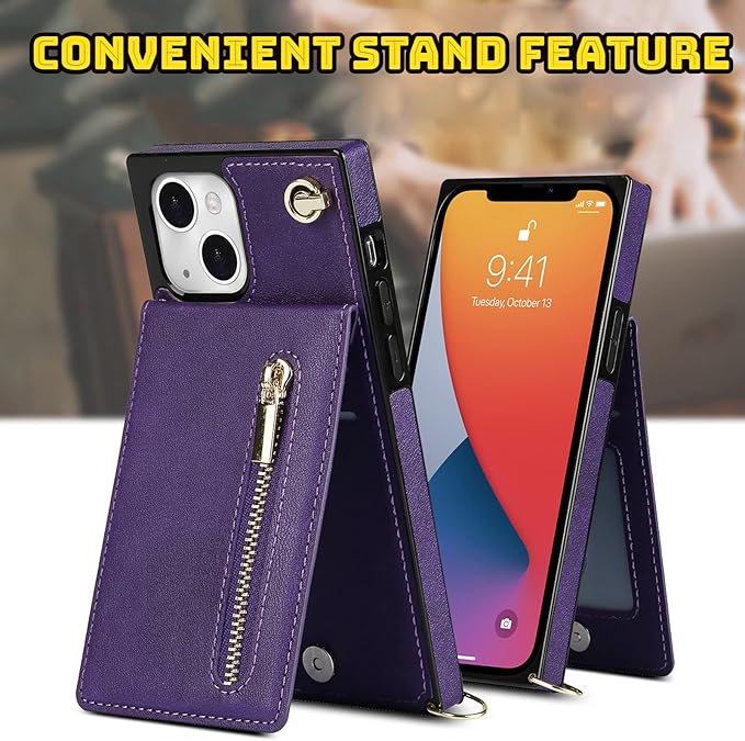 Crossbody Wallet for iPhone Case-Credit Card Holder, Multifunctional Leather Crossbody Phone Case for iPhone 14 Pro Max/14/14 Pro (E-Purple,for iPhone 14)