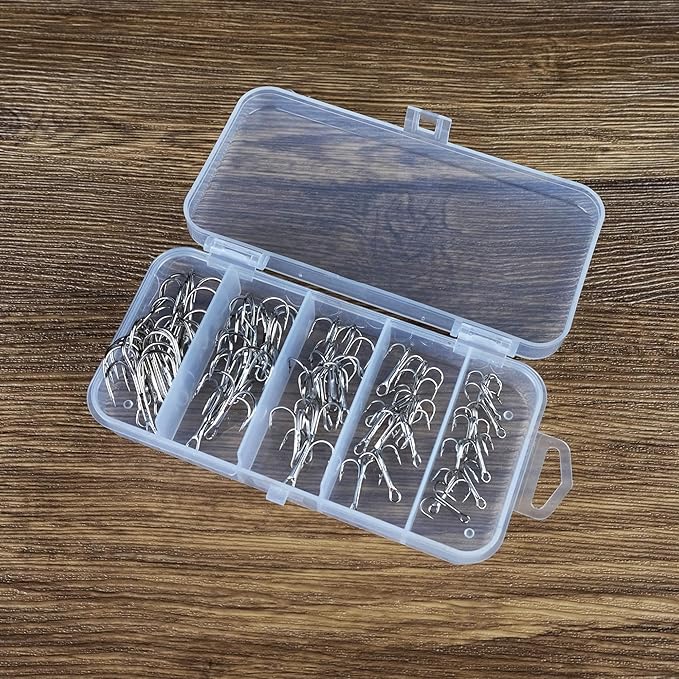 Piscorush トリプルフックセット トレブルフック ケース付 丸型 高炭素鋼フック ルアー用 3本針