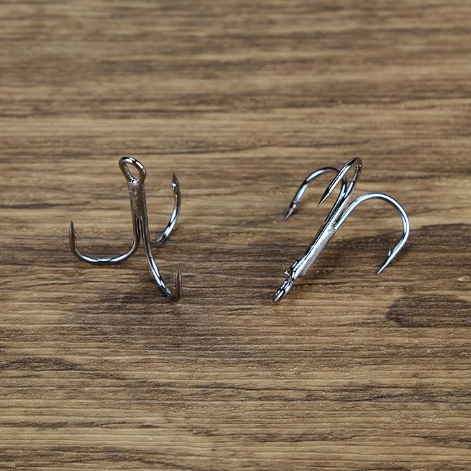 丸型デザイン:強化された丸型のトレブルフックです。頑丈な高炭素鋼製で、大型の魚にも対応します。