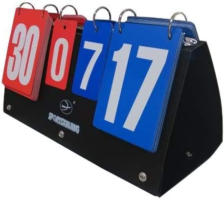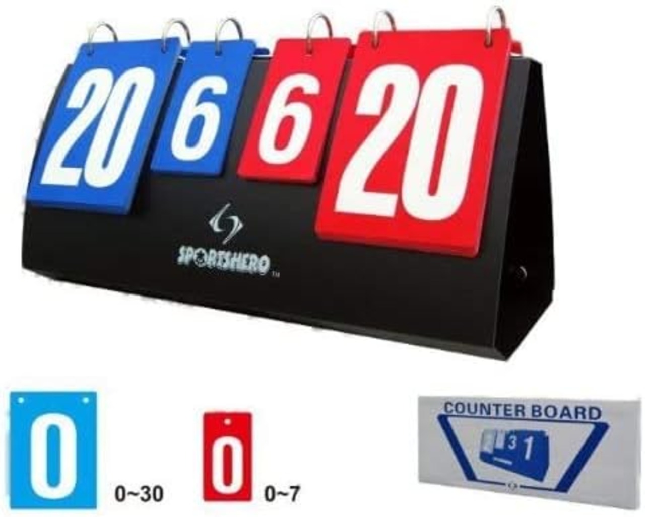 赤と青でわかりやすく色分けしてある得点板は、白抜き数字で見やすい大きな数字板は0から30まで、セット数の表示などあると便利な小さな数字板は0から7まで揃っているので、いろいろな場面で使用できます。