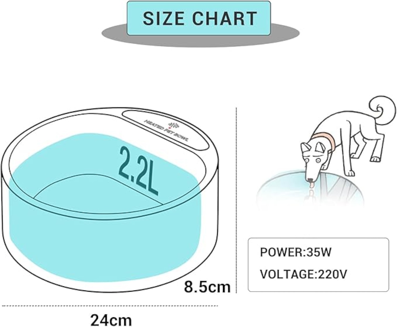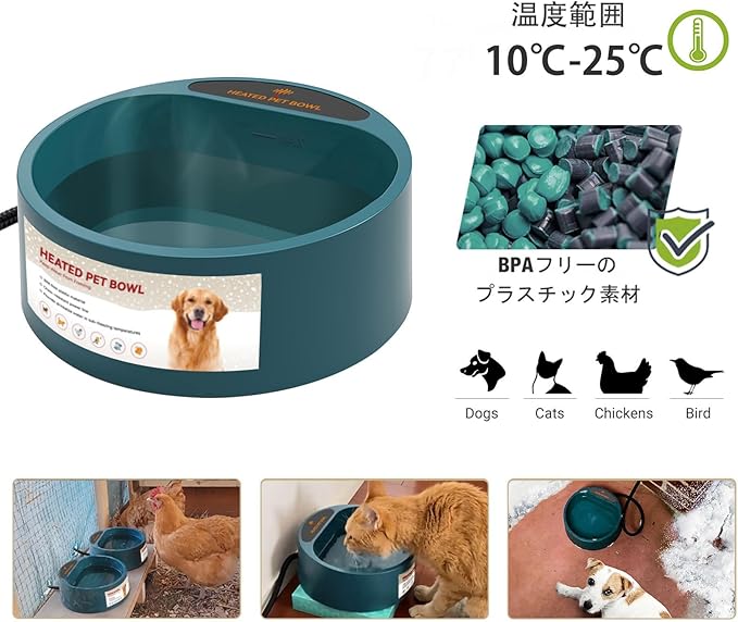 大容量:2.2Lの水が乗せる。犬、猫、鳥、鶏、ウサギあるいは他の農場小動物。 出力は35W。