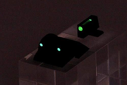 電動ハンドガン ハイキャパE用のゴーストリングサイトです。 リアのリングを通してフロントの大径集光ドットを覗く方式の為、ドットサイトのように直感的かつ圧倒的に素早いサイティングが可能になります。 フロントサイトは横から見た際に集光アクリルが目立たないよう上部窓から採光する方式を採用。 他のカスタムサイトとは一線を画す奇抜なデザイン。 フロントサイトは集光アクリルでありながら発光もします。リアサイトにも蓄光ドットを配置してあるので暗所では3点式サイトとして使用可能。 明るい場所、暗い場所問わず機能する唯一のハイブリッド式ゴーストリングサイトになります。 ドライバー1本あれば無加工で簡単に交換可能。取り付けにはノーマルサイトに使用されているタップネジをそのまま使用して下さい。 フロントサイトを蓄光する場合は200ルーメン以上のフラッシュライト、又は紫外線LEDを使用してください。通常の蛍光灯、低ルーメン白色LEDでは十分に蓄光できない場合があります。 材質:焼結ナイロン(3Dプリンタ出力) 重量:2.5g フロントドット:2.6mm径 蓄光・集光アクリルドット リアドット:1.6mm径 高輝度蓄光ドット リアサイトリング内径:8mm 発光時間:約60分間、視認可能時間約45分間(3V紫外線LED15秒照射時)