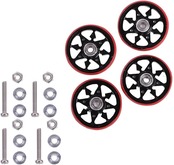 プラリングベアリングローラーは衝ローラー中トップクラスの抵抗の少なさで、ローラー径が大きいことも加わり、高速で走りぬけることができる反面、衝撃に弱いことが大きな課題ですが、本製品はスポーク部分を4 x 4にしており、耐衝撃性を高める工夫をしております。