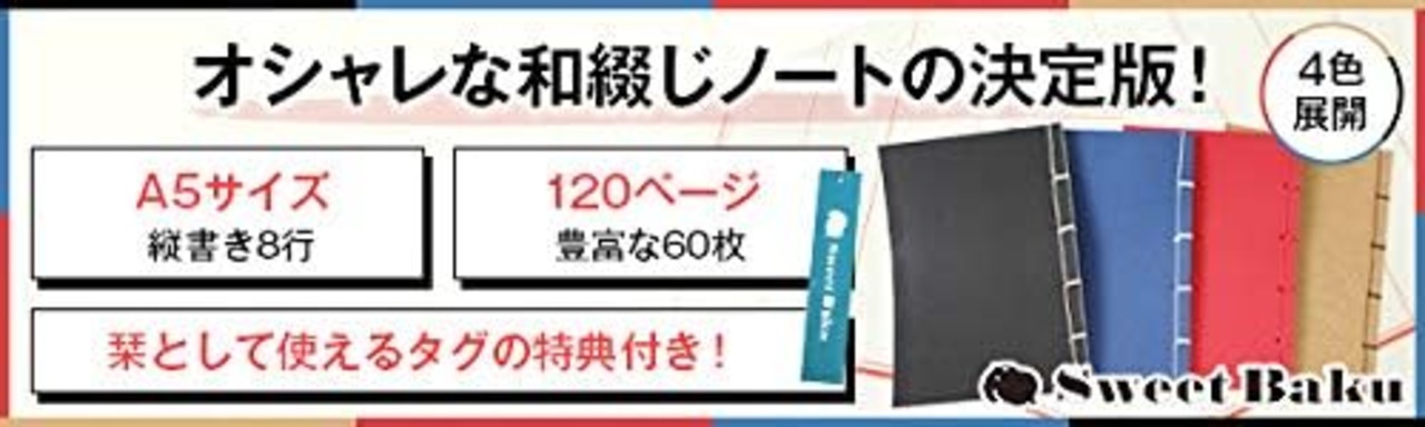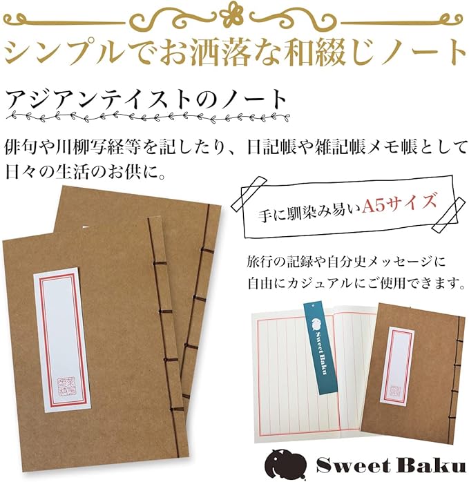 【和綴じノート-A5-縦書き】【文房具-ノート】 自由帳-日記帳-俳句ノート オフホワイト-120ページ 2冊セット Sweet Baku (青2)