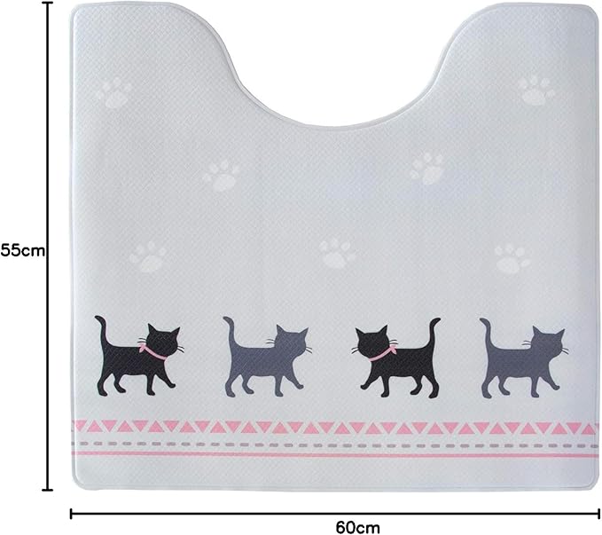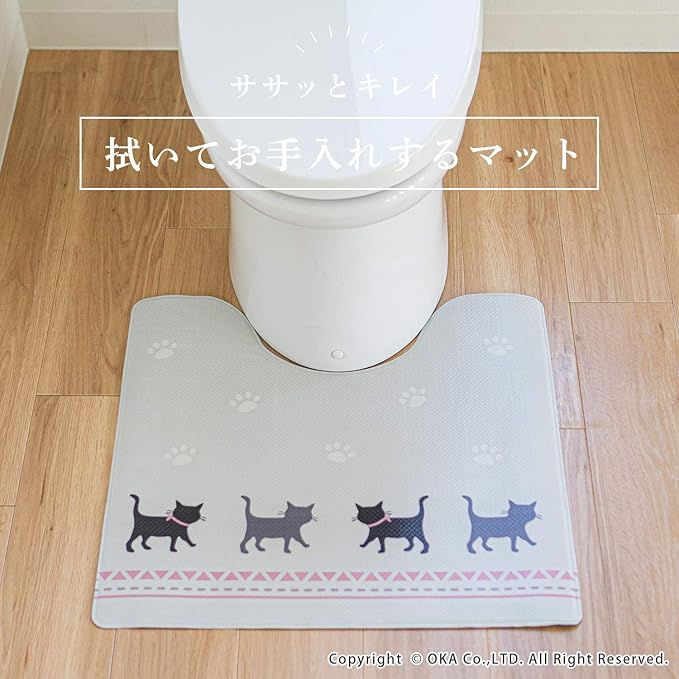 オカ(OKA) 拭けるトイレマット 約55cm 60cm グレー(キャット)(拭くだけ PVC ビニール)