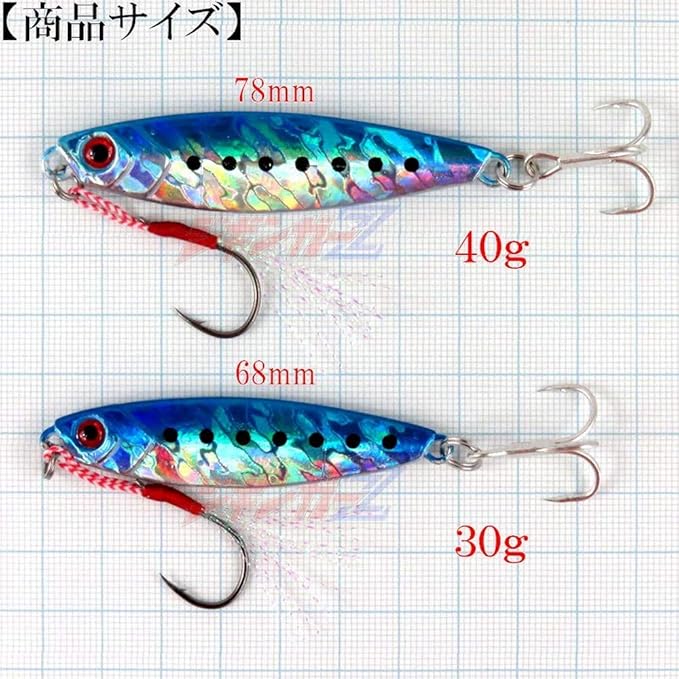 【商品詳細】30gタイプ ・重量:30.7g ※アシスト&テールフック含 ・サイズ:W70 H15.5 L6mm ※ジグ本体