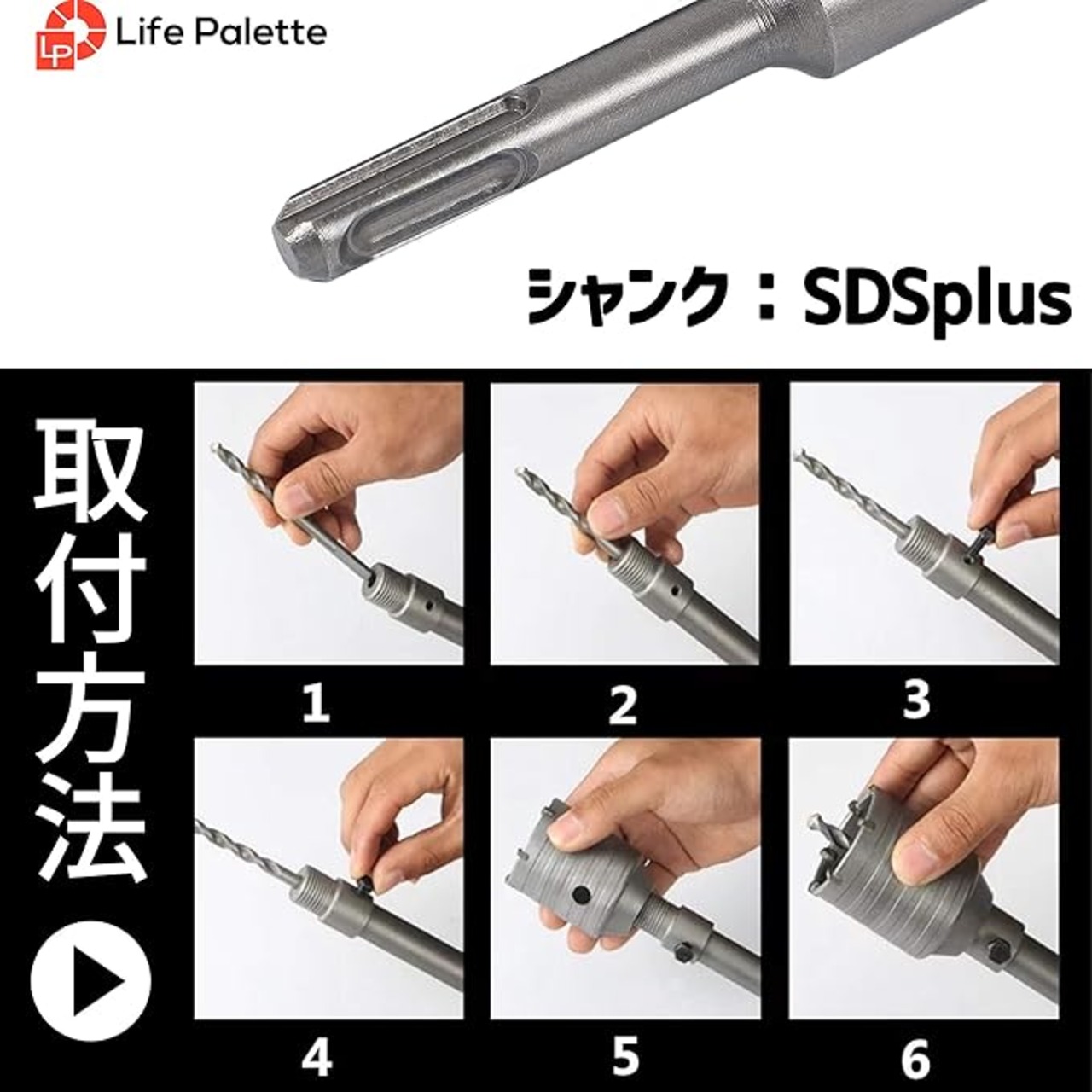 ライフパレット コンクリートドリルセット ホルソー ホールソー ロング sdsプラス 30mm 40mm 50mm 60mm 70mm