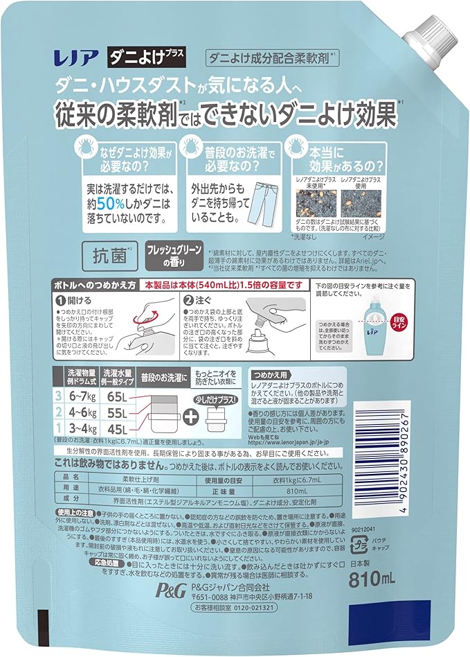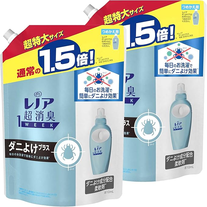 【まとめ買い】レノア 本格消臭 柔軟剤 ダニよけプラス 詰め替え 超特大 810mL 2個