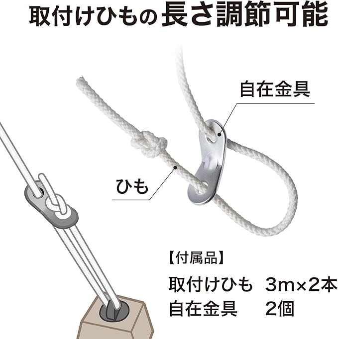 付属品:取付けひも3m 2本(ホワイト)、自在金具2個