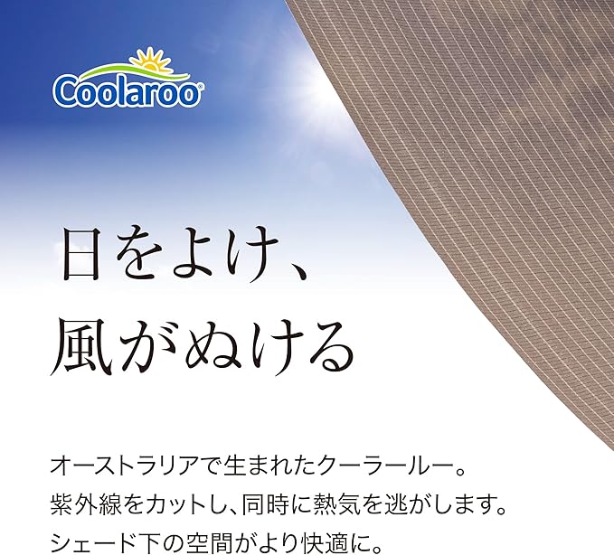 日をよけ、視線を遮り、 心地よい風がぬける、紫外線に強く破れにくいクーラールーのシェード。紫外線大国のオーストラリアで生まれ、20年以上世界中で愛され続ける「Coolaroo」は、紫外線をカットすると同時に熱気を逃す、快適な空間を生み出すシェードです。それはまるで、かつての日本家庭における、軒のある縁側のような心地よさ。