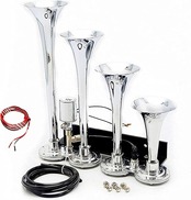 4つのトランペットエアトレインホーン、輝くシルバー仕上げ。