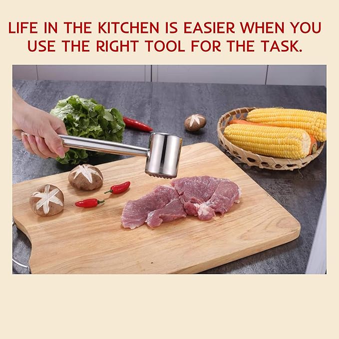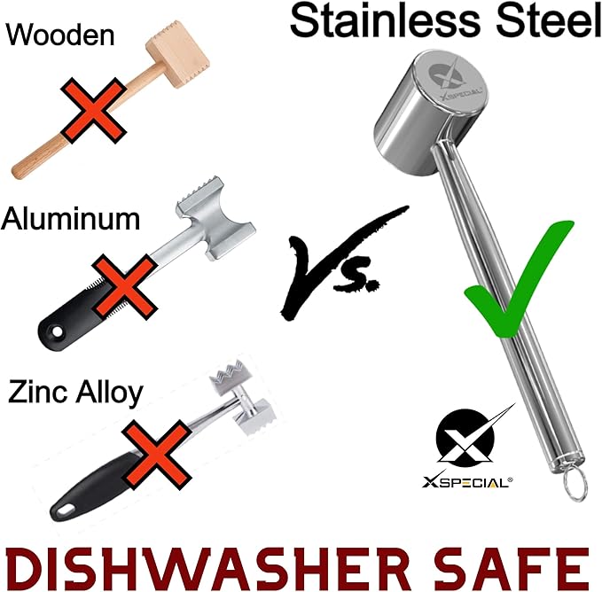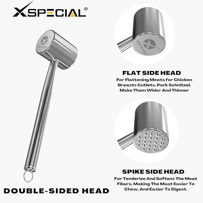 XSpecial 肉たたき ハンマー 両面ヘッド ステンレススチール - 100%食洗機対応 - 使いやすい - 最高のキッチンマレットパウダー チキン、豚肉、子牛のカツレット用